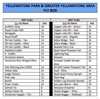 What are the best fly fishing flies for Yellowstone National Park? Look no further! This Yellowstone Trout Fly Fishing Fly Box was put together with the professional and amateur fly fisherman in mind! This trout fly box features 40 dry flies and 40 wet flies that are hand tied, tried and proven trout fly fishing flies that are top recommendations for trout fishing in Yellowstone National Park and surrounding areas. The chart below lists the specific dry and wet flies in this package.